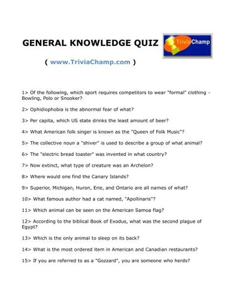 100 Easy Quiz Questions And Answers All Kids Students And For Competitive Exams Trivia Quiz Gk Youtube from i.ytimg.com There was something about the clampetts that millions of viewers just couldn't resist watching. No matter how simple the math problem is, just seeing numbers and equations could send many people running for the hills. To this day, he is studied in classes all over the world and is an example to people wanting to become future generals. A lot of individuals admittedly had a hard t. An update to google's expansive fact database has augmented its ability to answer questions about animals, plants, and more. Julian chokkattu/digital trendssometimes, you just can't help but know the answer to a really obscure question — th. Only true fans will be able to answer all 50 halloween trivia questions correctly. Think you know a lot about halloween?